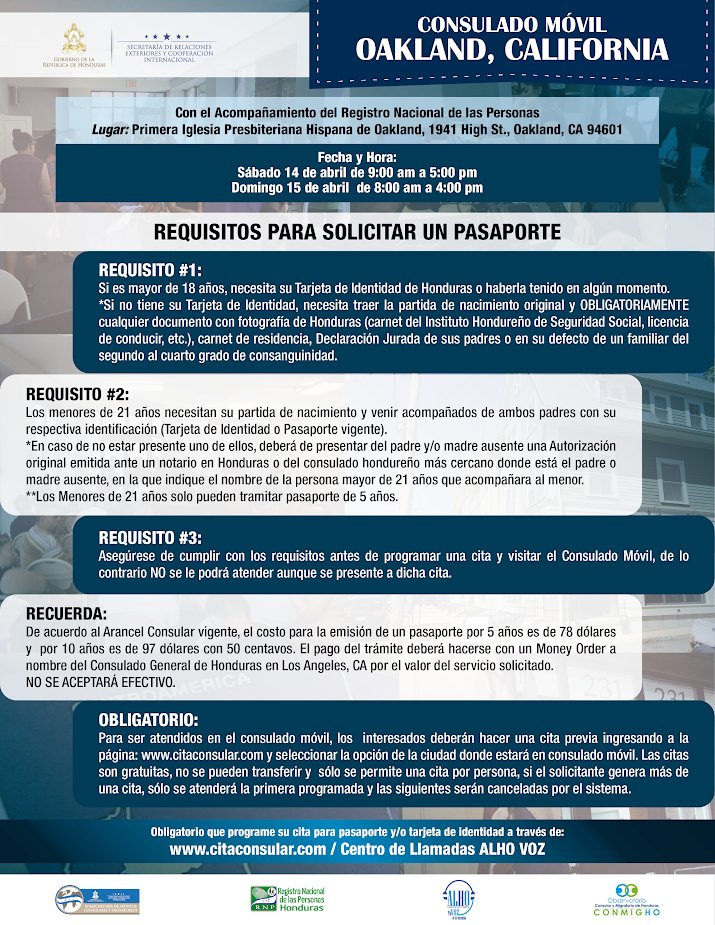 Hondureños residentes en la ciudad de Oakland, en el estado de California, Estados Unidos, participa en el consulado móvil que se realizará este próximo sábado 14 y domingo 15 de abril.pic.twitter.com/lemVe46MlN