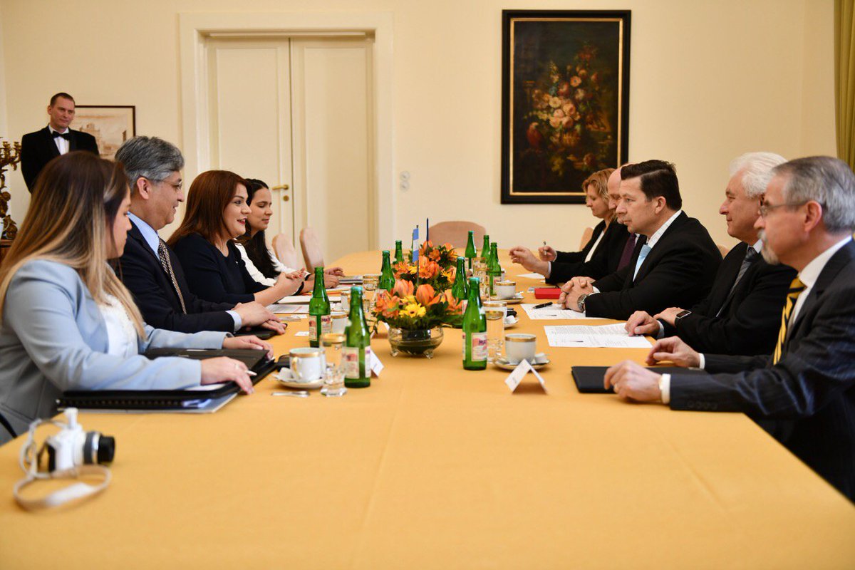 La Canciller @Mdaguero17 se reunió con el Secretario de Estado de la República Checa Miloslav Stašek para dialogar sobre inversión, comercio, seguridad y migración entre otros. Fortaleciendo las excelentes relaciones entre #Honduras