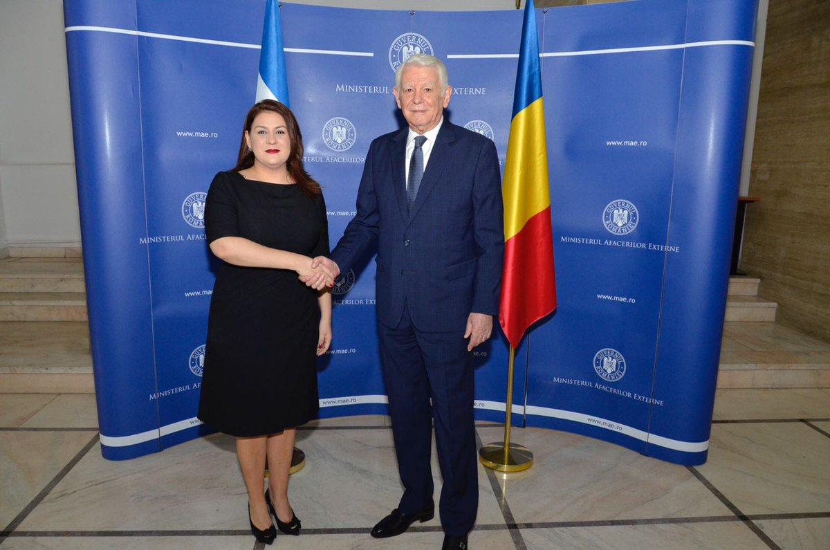 Histórico encuentro entre la Canciller de Honduras María Dolores Aguero Lara y Ministro de Relaciones Exteriores de Rumanía Teodor-Viorel Meleşcanu. #Honduras
