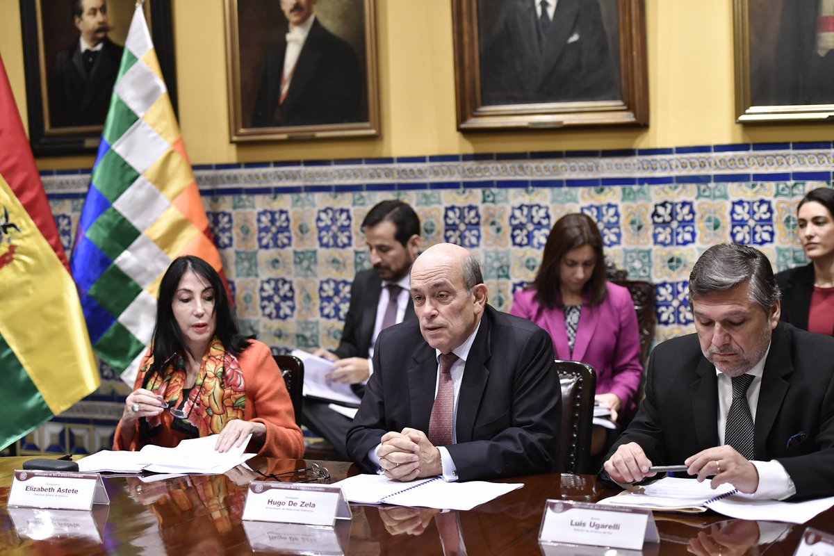 #Ahora | Vicecanciller Hugo De Zela y su homóloga de @MRE_Bolivia, María del Carmen Almendras, sostienen reunión de trabajo en Palacio de Torre Taglepic.twitter.com/w1B0FRggUb