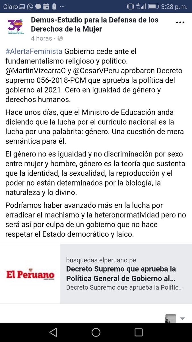 ¡Van contra nuestra Constitución! En el Perú se reconoce como peruanos a hombres y mujeres Con nosotros nada de géneros Hay peruanos (hombres y mujeres) pacíficos y los hay violentos;pero esto no tiene q ver con el sexo. Ver estadísticas sobre el número de muertes violentas.pic.twitter.com/VPPdLnHWlu
