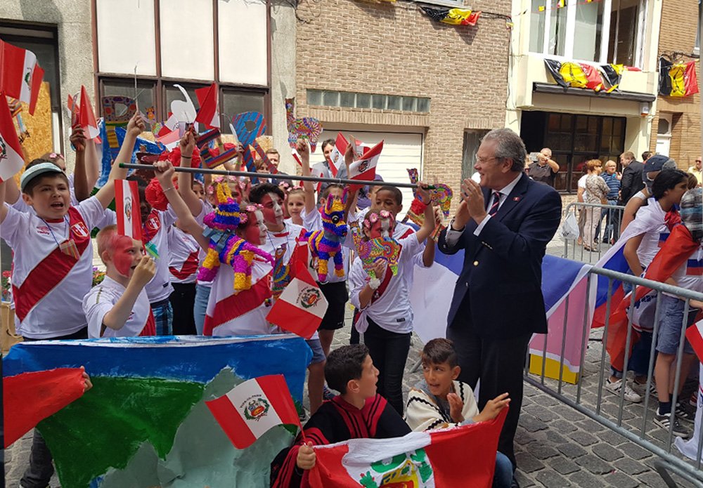 "La bicolor del Perú" protagonizado por niños de la escuela belga Planeta Verde, quienes realizaron una vistosa y animada presentación sobre la @SeleccionPeru ¡Arriba #PER!pic.twitter.com/eITFBgbIJB