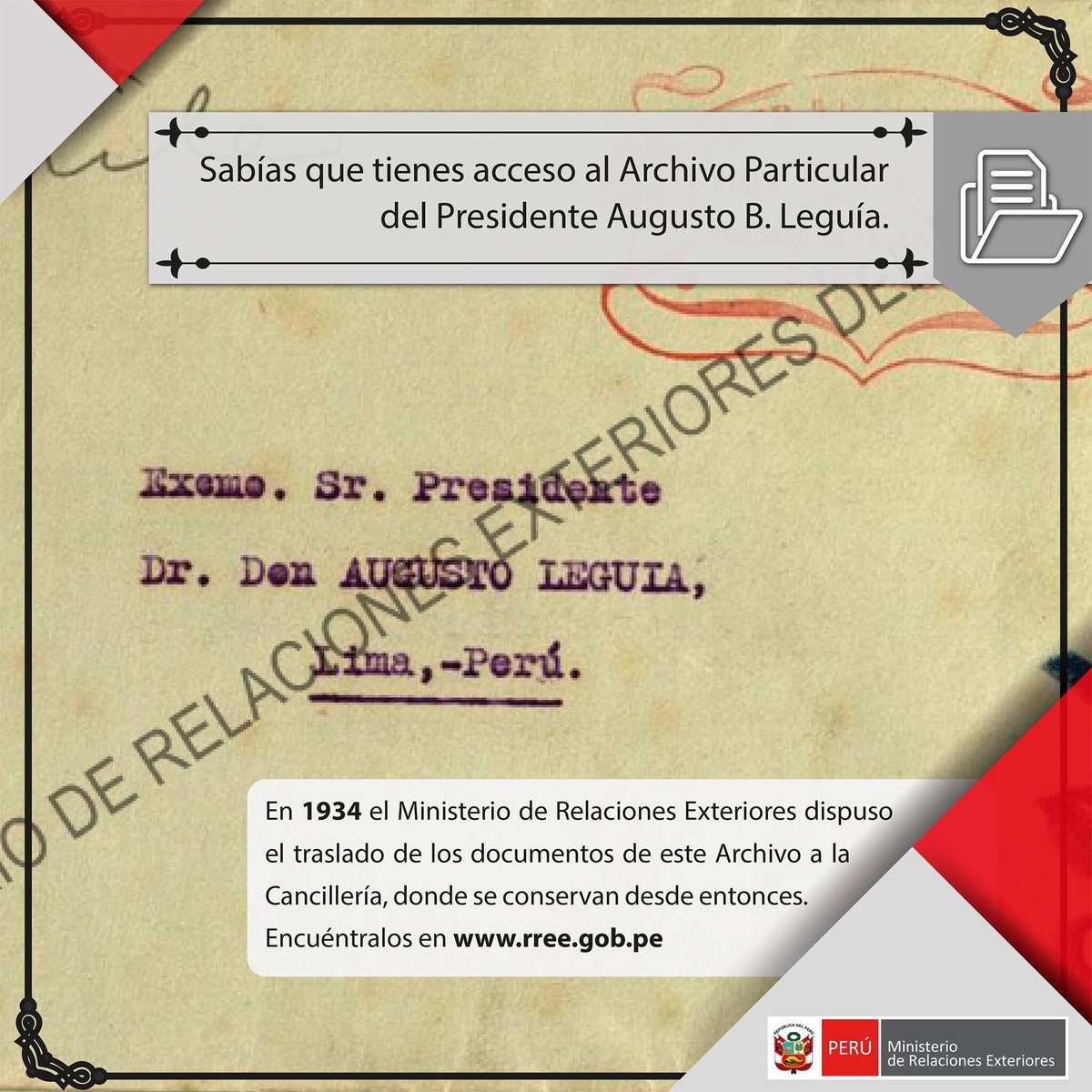 #InfoCancillería | ¿Sabías que en @CancilleriaPeru se conserva el archivo particular del presidente Augusto B. Leguía? Encuéntralo en nuestra web