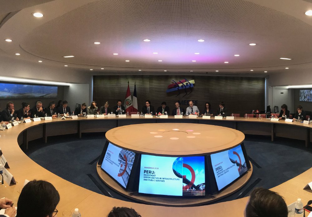 Se realizó con éxito en París el roadshow de @ProInversionPe “Oportunidades de inversión en infraestructura y servicios públicos”, con miras a promover, ante el empresariado francés, las posibilidades de inversión en el Perú. Evento fue coorganizado por la Embajada @PeruEnFranciapic.twitter.com/pSV0FgAEFq
