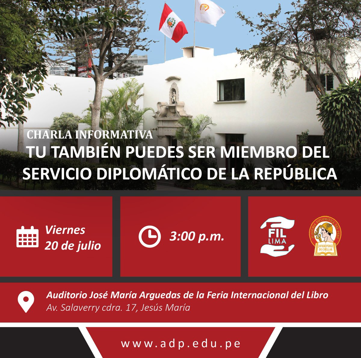 ! Charla informativa sobre el ingreso al Servicio Diplomático @Academiadiplo. Viernes 20 de julio en la @FilLima2018 a las 3:00 p.m.