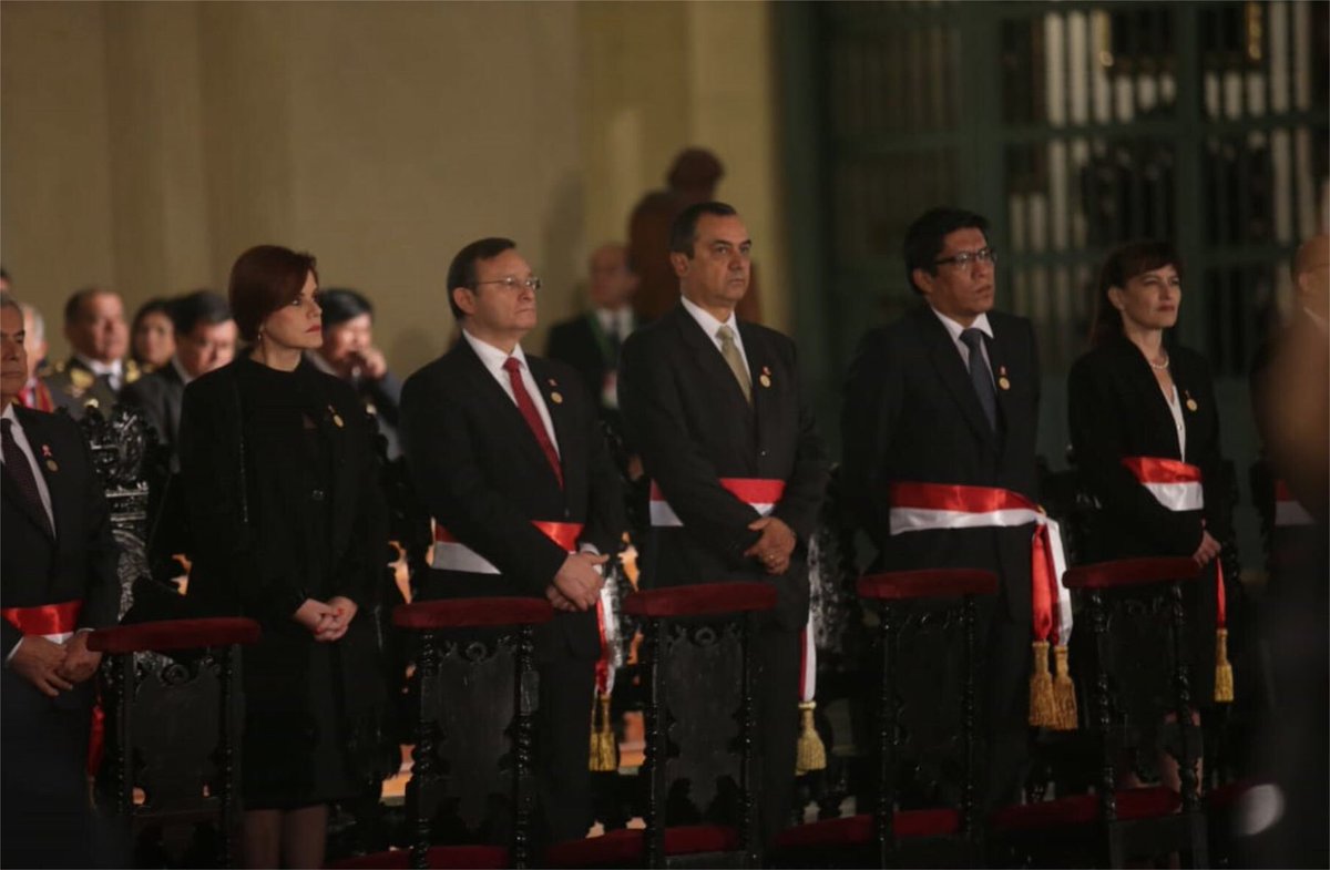 Canciller @NestorPopolizio, junto a ministros de Estado, acompaña al presidente @MartinVizcarraC en la Misa y Te Deum por el 197.° aniversario de la Independencia del Perú. #LoQueNosUnepic.twitter.com/O4IMUQTvZF