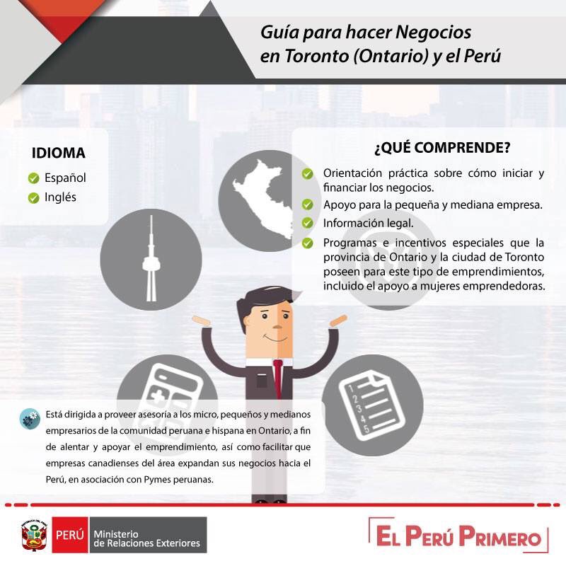 #InfoCancillería | ¿Eres dueño de una Mipyme y te gustaría expandir tu empresa? Consulta la guía interactiva para hacer negocios en Ontario y el Perú, presentada por nuestro consulado en Toronto.