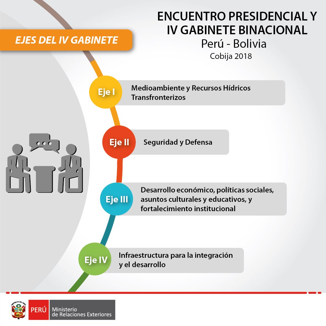 🔽 Conoce cuáles son los 4 ejes temáticos del Gabinete #BinacionalPerúBolivia 🇵🇪🇧🇴 que el 3 de setiembre reunirá a los presidentes de ambos países en Cobija.pic.twitter.com/W28NOUCkmh