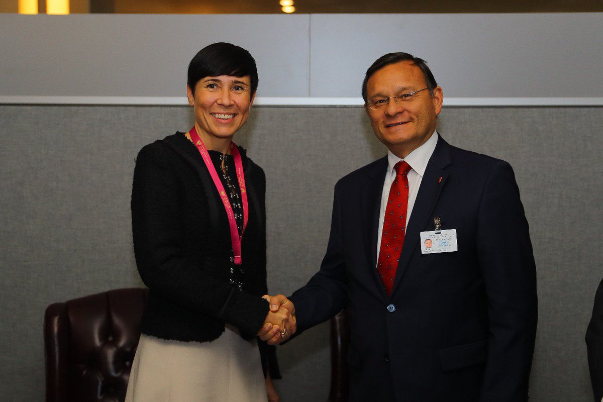 | Canciller @NestorPopolizio y ministra de Relaciones Exteriores de Noruega, Ine Marie Eriksen Søreide, sostuvieron un encuentro bilateral