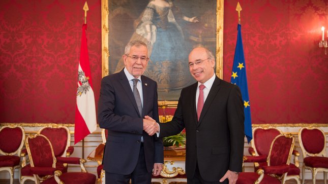 | El Embajador Eric Anderson Machado presentó sus cartas credenciales al Presidente de la República Federal de Austria, Doctor Alexander Van der Bellen.