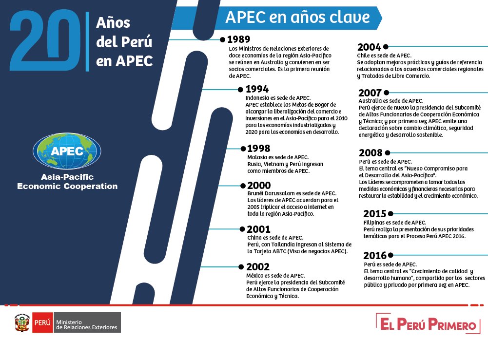 Conoce los años claves de @APEC y para el #Perú desde que integra el foro económico más dinámico del mundo y que este año se reúne en Papúa Nueva Guinea.