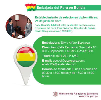 Sigue las actualizaciones en #Facebook de la Embajada del #Perú en #Bolivia http://on.fb.me/1batLCV pic.twitter.com/hNzulbk063