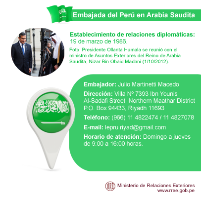 Sigue las actualizaciones en #Facebook de la Embajada del #Perú en Arabia Saudita http://on.fb.me/Hf7NFr pic.twitter.com/ElwCwsMjL5