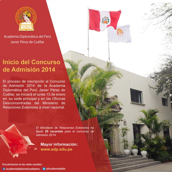 La @CancilleriaPeru ha fijado 20 vacantes para el Concurso de Admisión 2014 a la @Academiadiplopic.twitter.com/BJXJKSJYDb