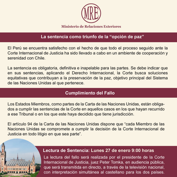 Este lunes 27 se dará lectura del fallo de la CIJ. Comparte el sgte. folleto: http://bit.ly/1gmoqul pic.twitter.com/kXpEdTUeRh