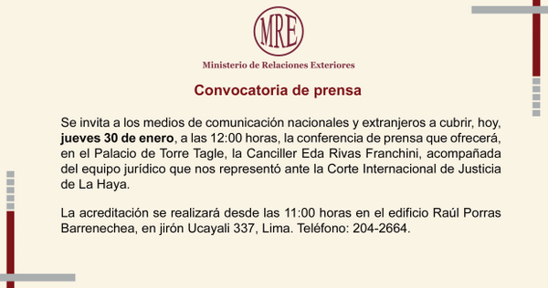 Convocatoria de prensa: Hoy, 12:00 horas. Canciller Rivas y el equipo jurídico que nos representó en #LaHayapic.twitter.com/rZ4HbLuszR