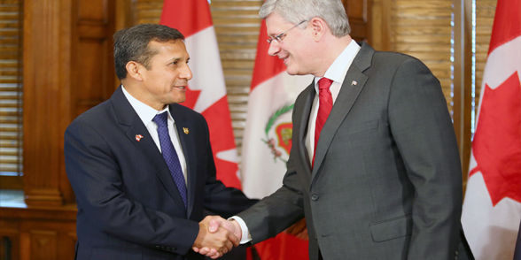 Presidente @Ollanta_HumalaT se reúne con el Primer Ministro de #Canadá, Stephen Harper http://bit.ly/1iyZ77R pic.twitter.com/SVYGCse8GW
