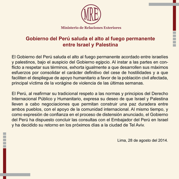 Entre? Ah?"@CancilleriaPeru: Gobierno del #Perú saluda el alto al fuego permanente entre #Israel y #Palestina pic.twitter.com/hKVjjkWcmT"