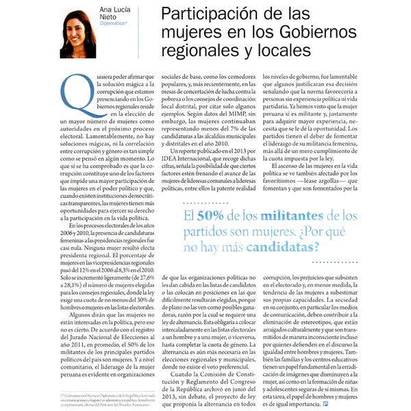 Participación de las mujeres en los Gobiernos regionales y locales, publicado en la revista @PODERPerupic.twitter.com/XJe6oYrzjA