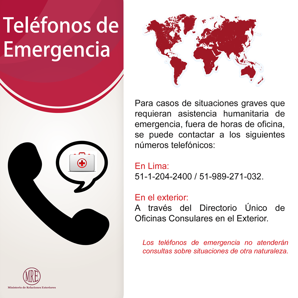 Conoce los teléfonos de emergencia de @CancilleríaPeru en #Lima y en el exterior: http://bit.ly/1msdhNa pic.twitter.com/Yvnt8pQbCv