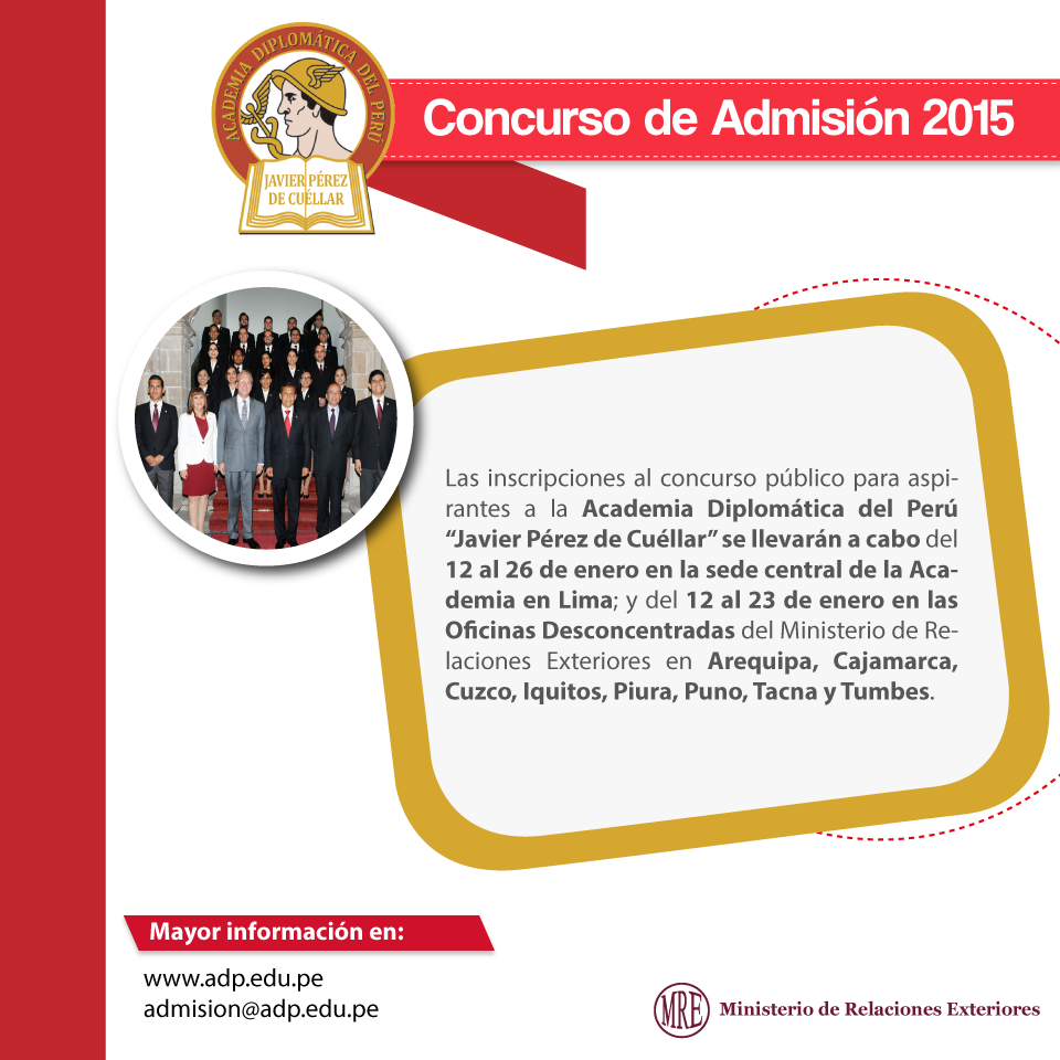 Convocatoria a Concurso Público de Admisión 2015 de la @Academiadiplo. Conoce más en: http://bit.ly/1w143IU pic.twitter.com/3gVv1wwrkw
