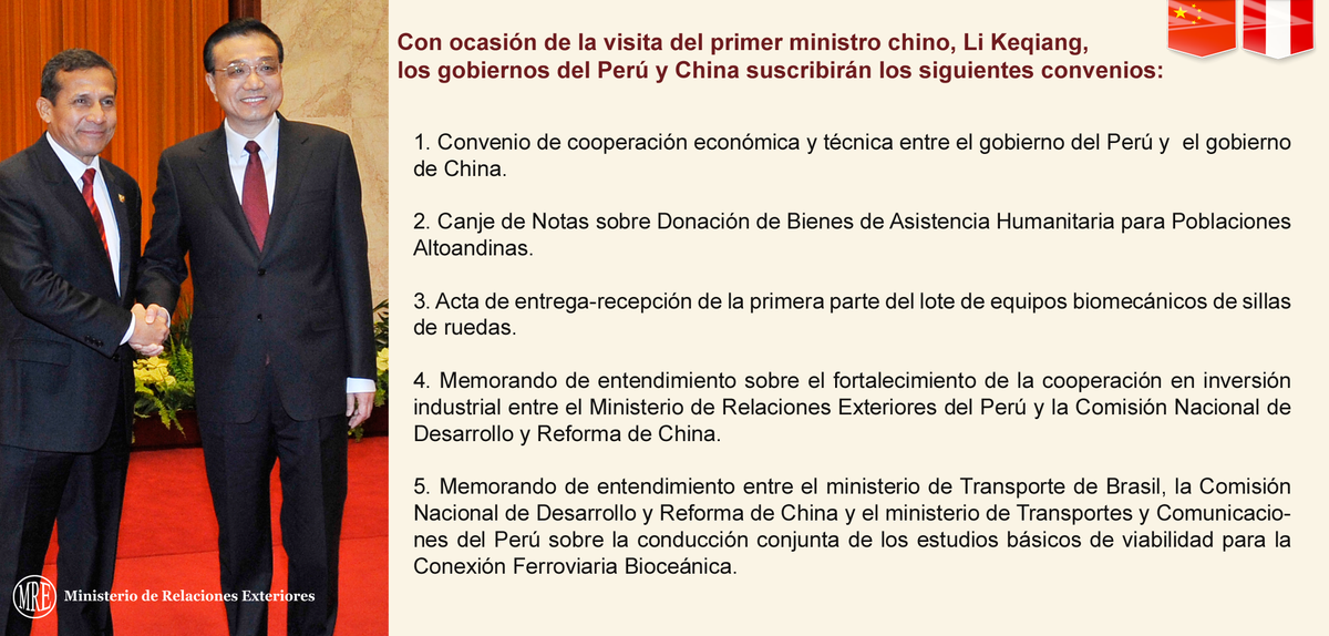 Los gobiernos del #Perú y #China suscribirán esta tarde los siguientes convenios:pic.twitter.com/V30gAZifjM