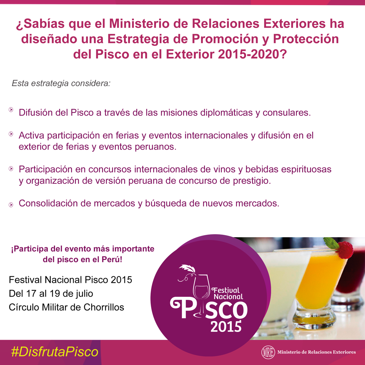 #InfoCancillería: La @CancilleriaPeru ha diseñado una Estrategia de Promoción y Protección del #Pisco en el Exteriorpic.twitter.com/OYrzVuXzZ9