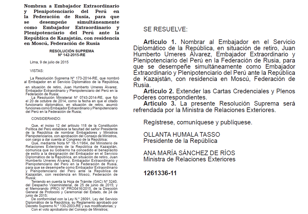 Nombran a embajador del #Perú en #Rusia para que se desempeñe simultáneamente como embajador en #Kazajstánpic.twitter.com/TLDHrSzyIe
