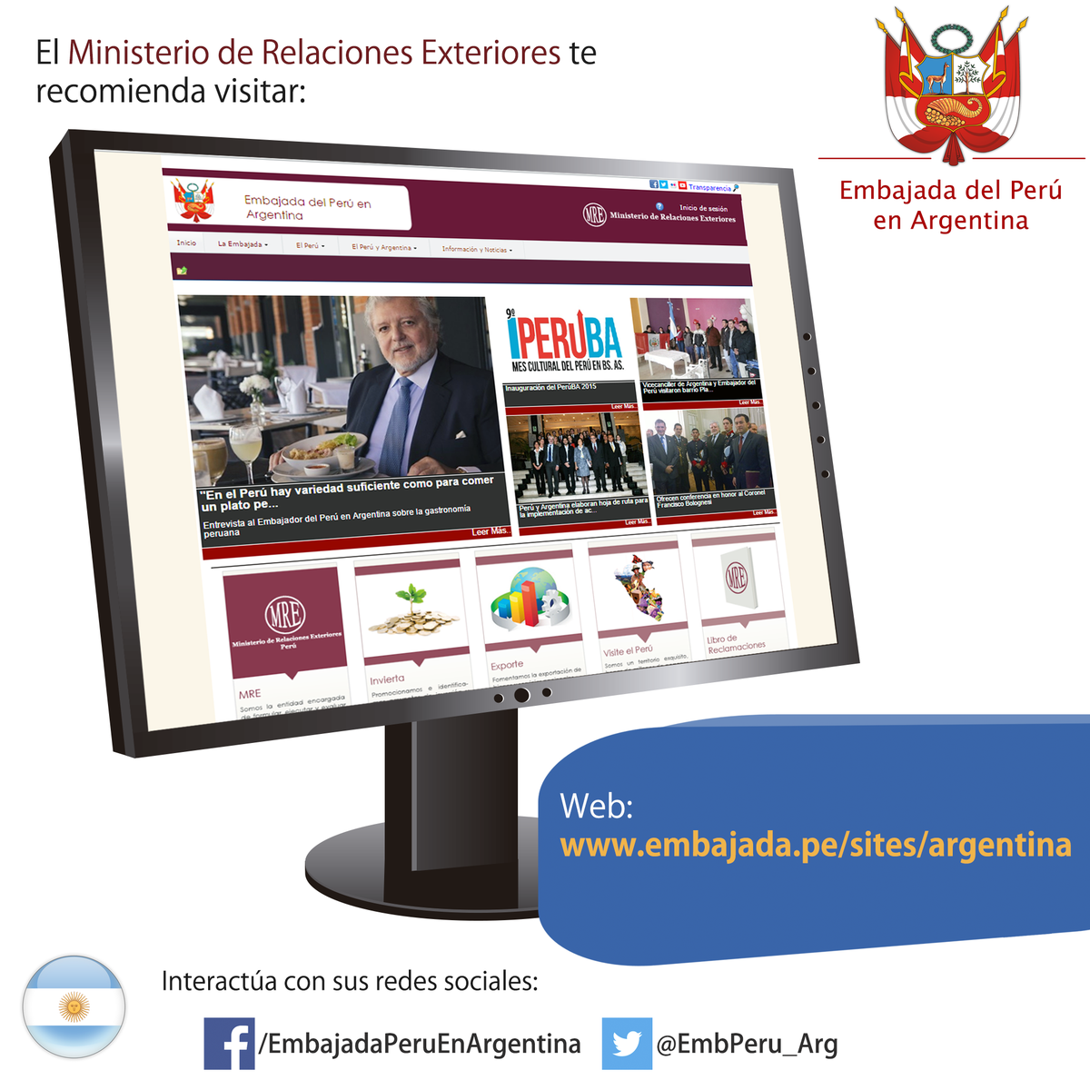 #InfoCancillería: Conoce la nueva web de la embajada del #Perú en #Argentina. Ingresa aquí: http://www.embajada.pe/sites/argentina pic.twitter.com/vmTVGKmAYs