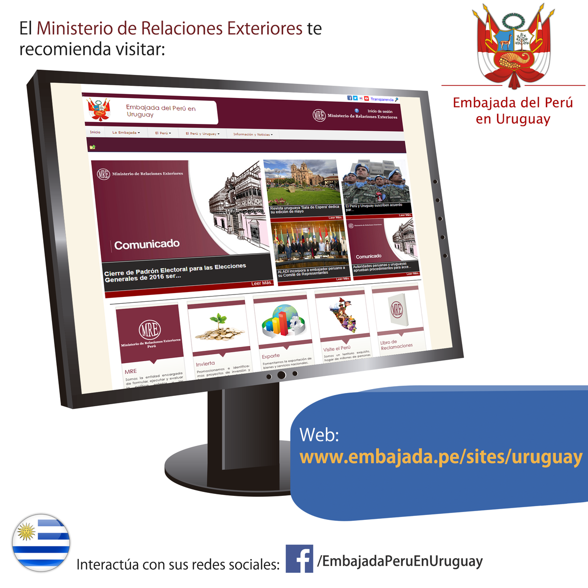 #InfoCancillería: Conoce la nueva web de la embajada del #Perú en #Uruguay. Ingresa aquí: http://www.embajada.pe/sites/uruguay pic.twitter.com/GWEguE7k6H
