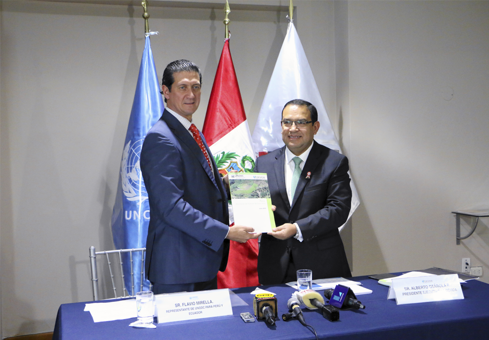 La @unodcesp y @DEVIDAPERU presentan informe sobre disminución de cultivos de #coca en #Perú http://bit.ly/1SnXHiE pic.twitter.com/138PBIEL9n