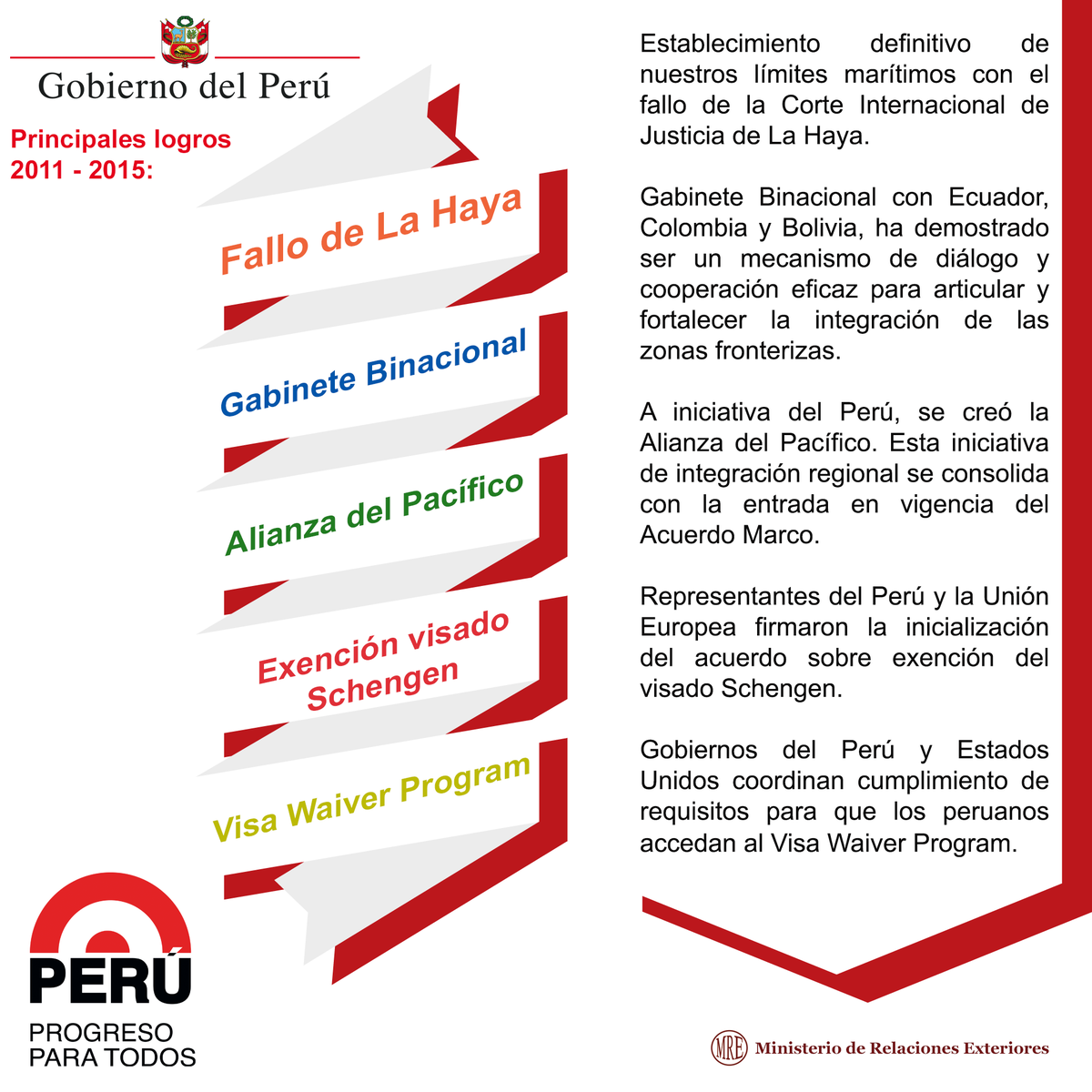 Compartimos los principales logros de la @CancilleriaPeru 2011-2015 #Feliz28 ¡Felices #FiestasPatrias!pic.twitter.com/GMFKYjzlXA