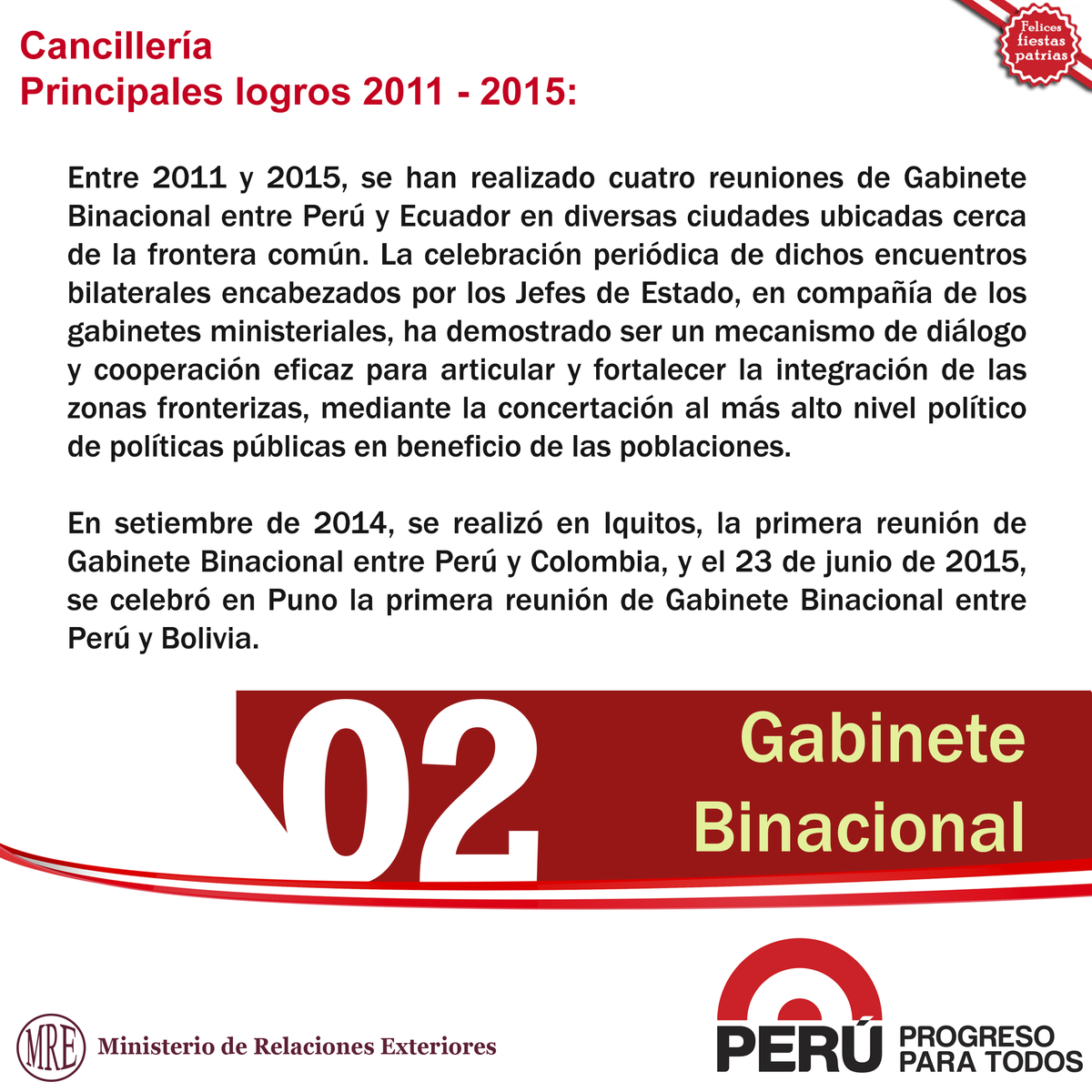 Logros 2011-2015: Gabinete Binacional con #Ecuador #Colombia y #Bolivia. Fortalece #integración de zonas fronterizaspic.twitter.com/4mslCj0m20