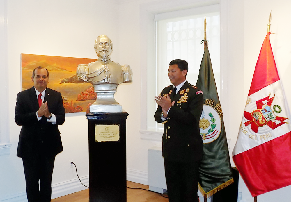 Agregaduría Militar del #Perú en #USA realizó entrega del busto de Bolognesi a @Emb_of_Peru http://bit.ly/1SoUSDk pic.twitter.com/Hvgd155TR2