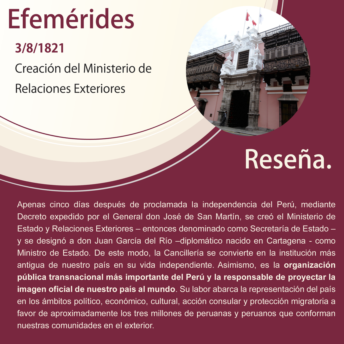 #Efemérides: #UnDíaComoHoy en 1821, se creó la @CancilleriaPeru http://bit.ly/1ISlTKI  saludamos a @CancilleriaPeru