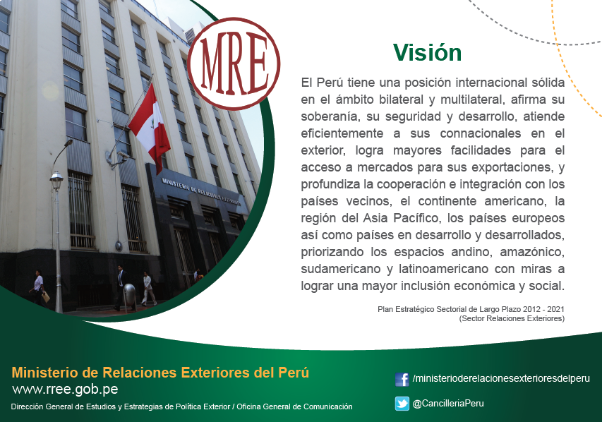 Con ocasión de nuestro 194° aniversario, compartimos la #visión de la @CancilleriaPeru http://bit.ly/1gEDU31 pic.twitter.com/eKpxKJAE3D