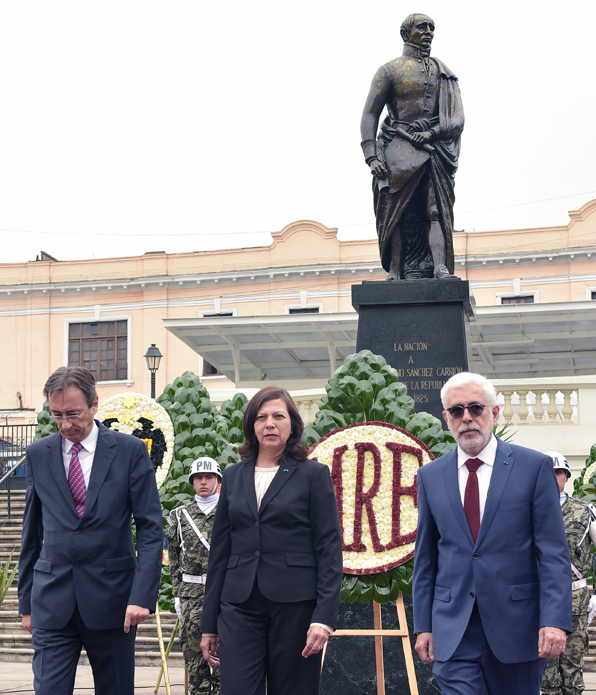 Ofrenda floral ante monumento a José Faustino Sánchez Carrión por aniversario de Cancillería http://bit.ly/1SZUExo pic.twitter.com/4S04T8KsKB