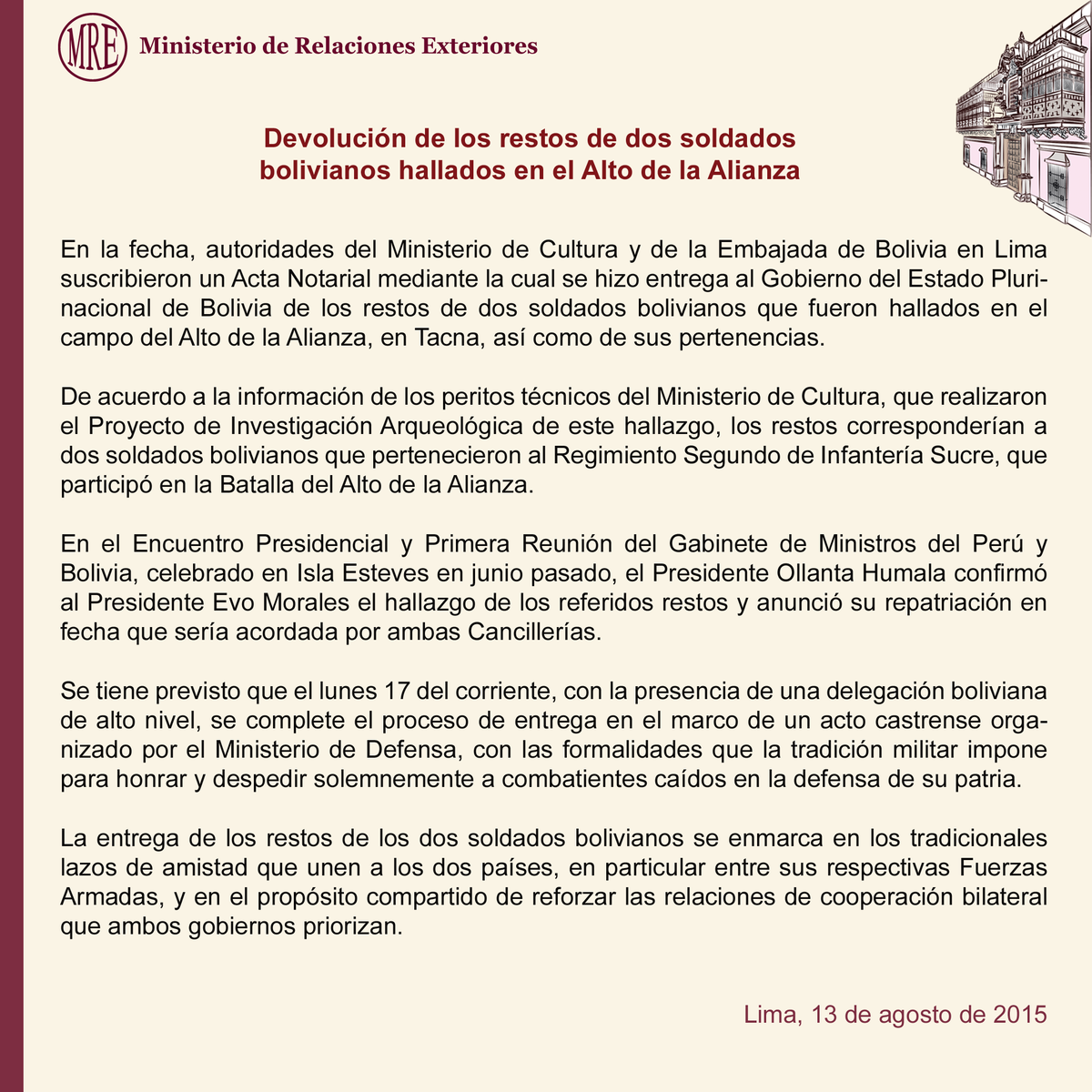 Cancillería Perú 🇵🇪‏Verified account @CancilleriaPeru 14 Aug 2015
