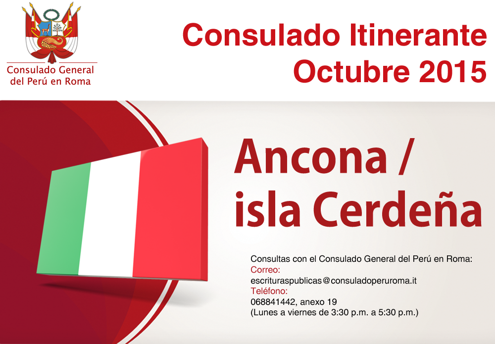 Nuestro consulado en #Roma organizará consulados itinerantes en Ancona / isla Cerdeña http://on.fb.me/1Qtm5iO pic.twitter.com/vmHzq6HfVS