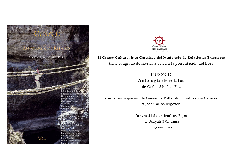 Hoy, 7pm en el @CCIncaGarcilaso: Presentación del #libro 'Cuszco. Antología de relatos' #IngresoLibrepic.twitter.com/dwPuGBaI5m