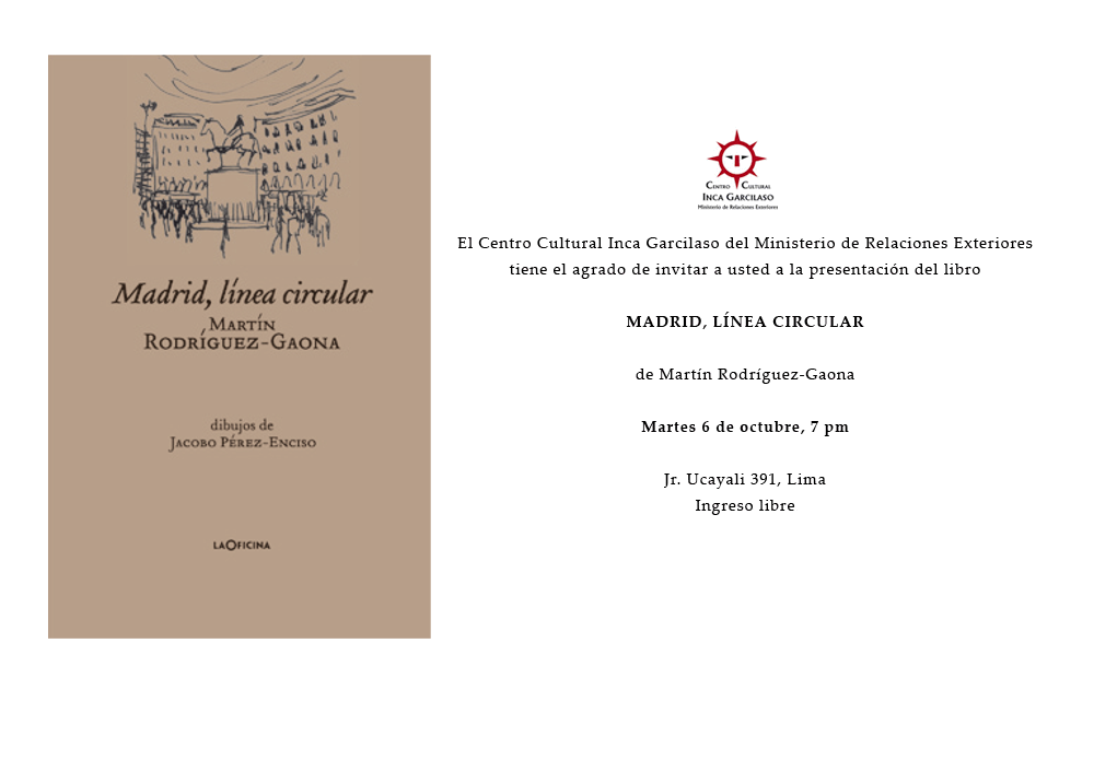Mañana en @CCIncaGarcilaso: Presentación del #libro 'Madrid, línea circular' de Martín Rodríguez-Gaona #IngresoLibrepic.twitter.com/bqpxRGcXHY