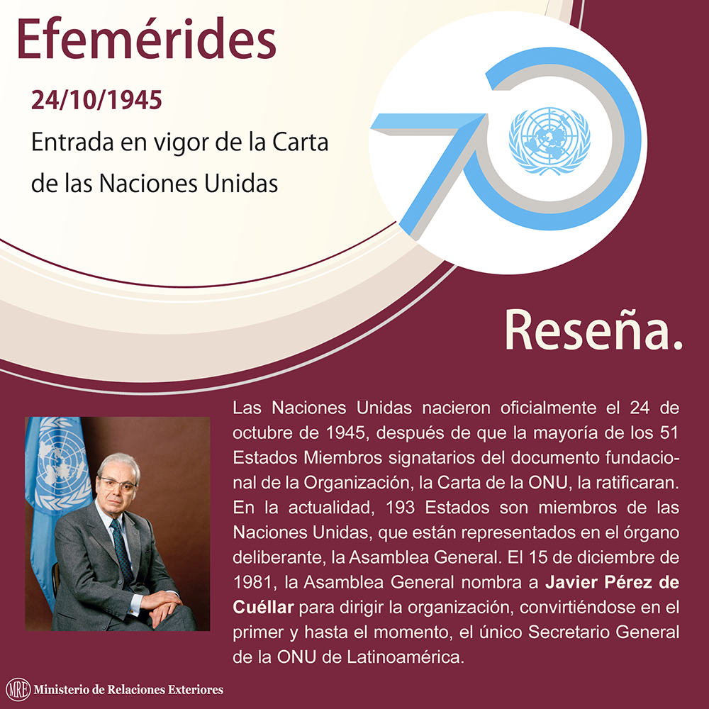 #Efemérides #UnDíaComoHoy en 1945, entrada en vigor de la Carta de la @ONU_es / @UN #ONU70Años #UN70pic.twitter.com/kmWtBayLrU