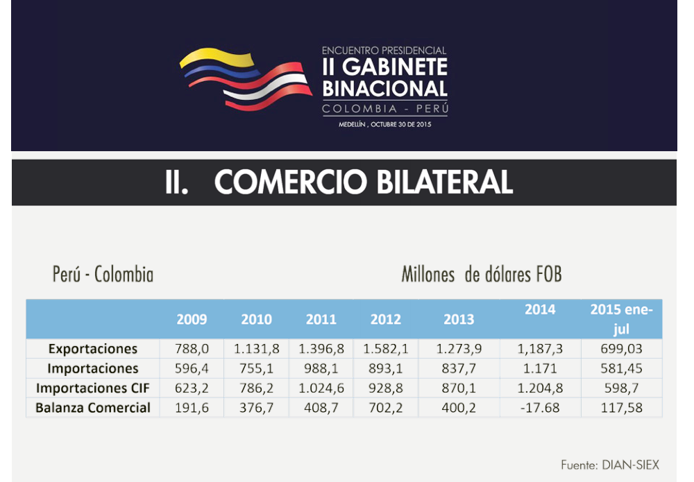 Compartimos en #cifras el #comercio bilateral entre Perú y Colombia http://bit.ly/1kggvGj pic.twitter.com/Kd46ZOse10