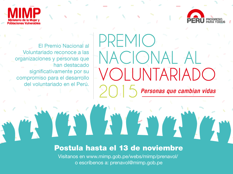 Participa del Premio Nacional al #Voluntariado 2015. Postula hasta el 13 de noviembre http://bit.ly/1L1rvNh pic.twitter.com/q8U76PJfC0