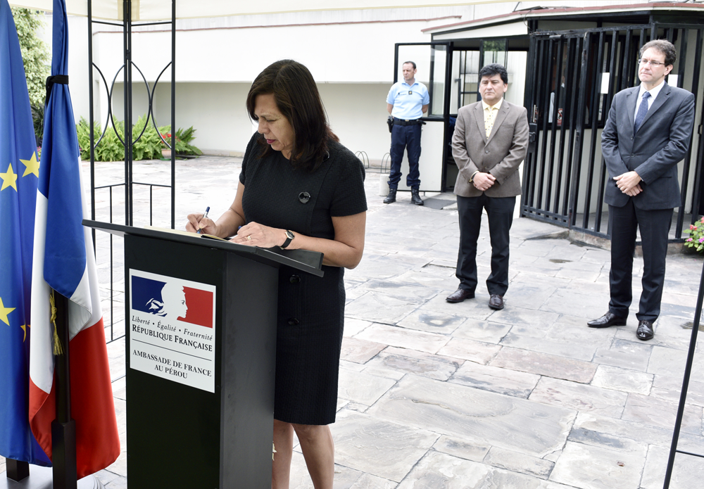 Ministre des Affaires étrangères du #Pérou a signé livre de condoléances à l´Ambassade française à #Limapic.twitter.com/O7GdIzRe2z