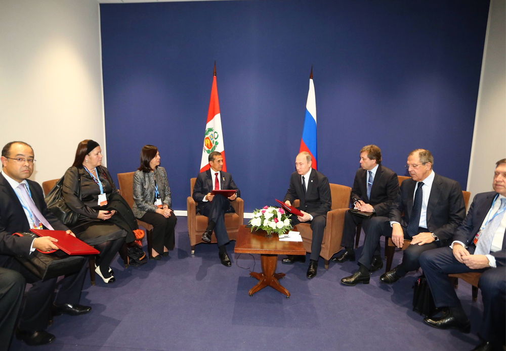 Canciller Sánchez participó en reunión bilateral entre presidentes del #Perú y #Rusia http://bit.ly/1NiYIVV pic.twitter.com/dpOF7bQ4lp