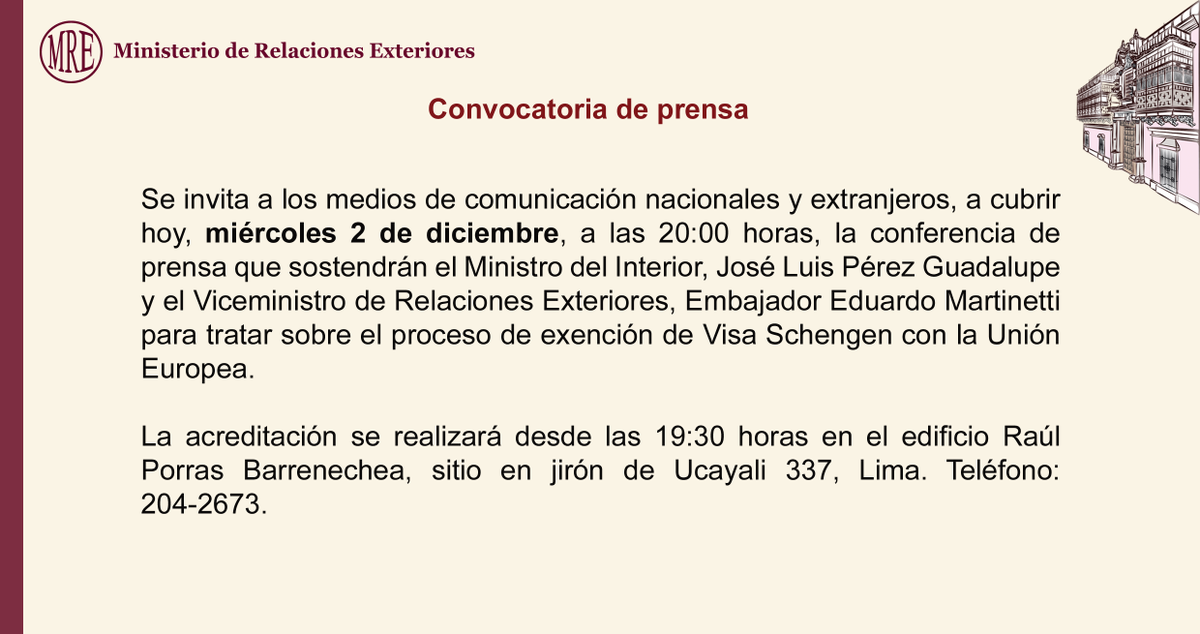Atención #periodistas, convocatoria de prensa: Proceso de exención de #VisaSchengen con la #UniónEuropeapic.twitter.com/LUQSjTHd8z