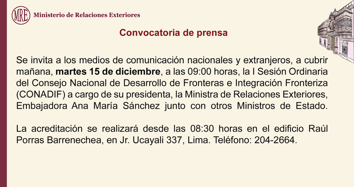 Convocatoria de prensa: Sesión Ordinaria del Consejo Nacional de Desarrollo de Fronteras e #Integración Fronterizapic.twitter.com/SrOjMFSDnT