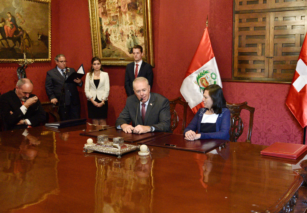 Canciller Sánchez y embajador de #Suiza en #Perú suscribieron acuerdos en Lima http://bit.ly/1O3Ktow pic.twitter.com/XdQnSYkHlt