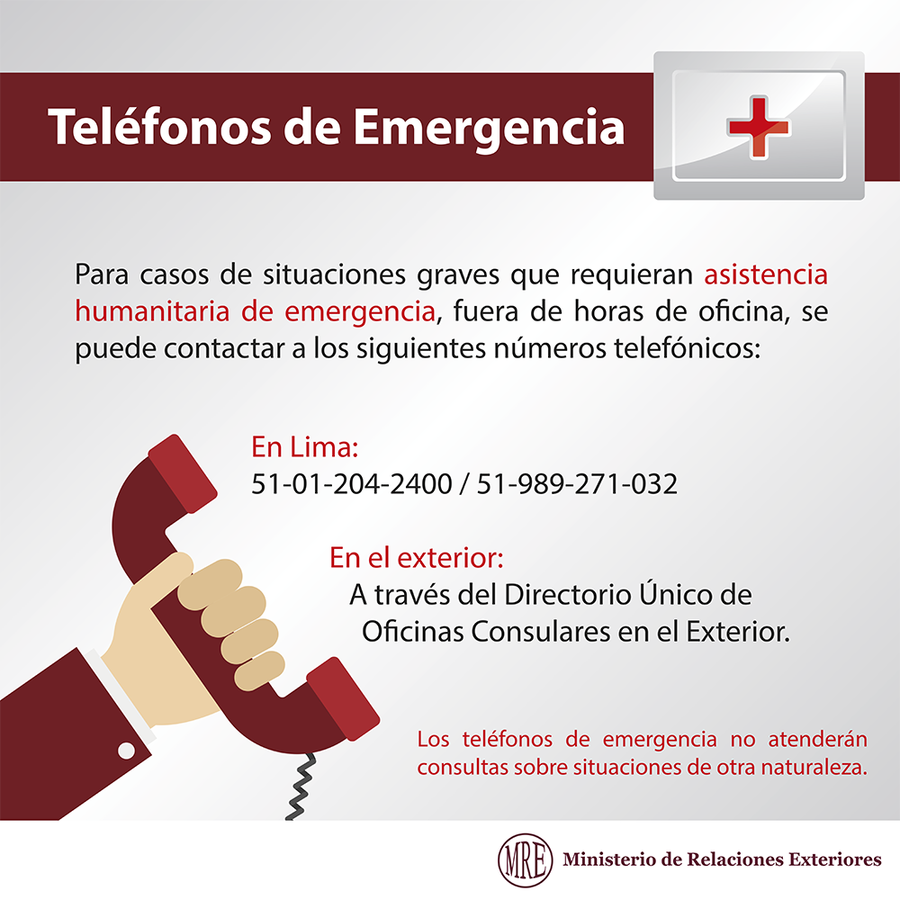 Para casos de situaciones graves, teléfonos de #Emergencia en #Lima y en el exterior http://bit.ly/1msdhNa